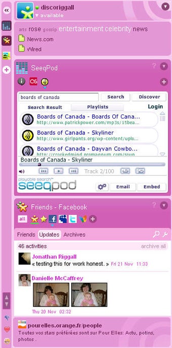 Yoono rajoute une barre latérale (que l'on peut masquer) où vous retrouvez Facebook, MySpace, Twitter, Flickr et tous les autres sites du genre. Yoono envoie également des notifications via pop-up quand une actualité nouvelle apparaît ou qu'un de vos contacts a mis à jour son statut. bien entendu ces alertes sont configurables.