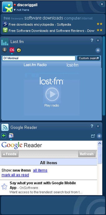 Yoono sait aussi synchroniser vos comptes Google Reader et permet de se connecter à des sites de radios en ligne comme Last.fm. Les comptes de courrier Yahoo! Mail et Gmail sont aussi de la partie.